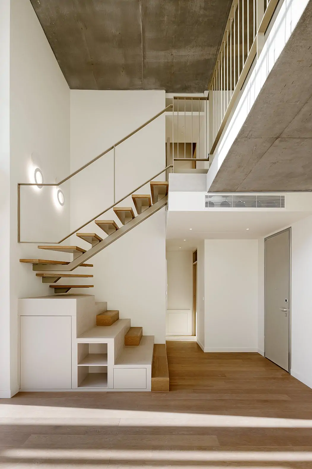 This resulted in a higher quality living environment for all occupants. The semi-outdoor staircase design has been chosen for this project, which allows for better connection and interaction between the exterior environment and interior of the residences. This design not only enhances visual appeal, but also helps to emphasize the relationship between the surrounding greenery and the homes.